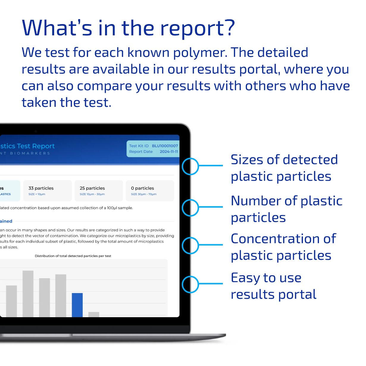 Obtén información precisa sobre el número, tamaño y concentración de partículas de microplásticos en tu sangre. Además, compara tus resultados con los de otras personas que han realizado el test.Validación independiente y revisión por expertos